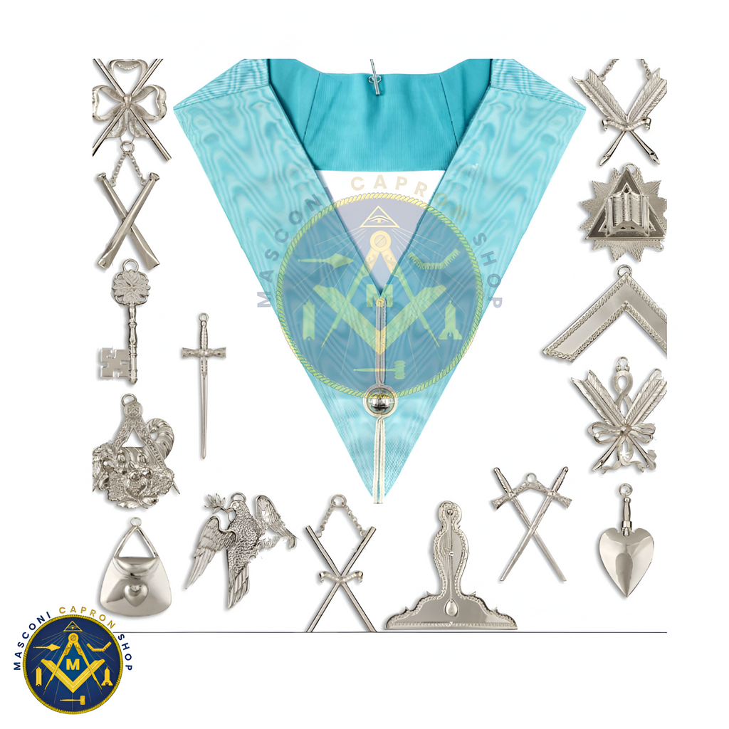 Collar Finest quality hand made craft officers collar made with turquoise blue moire watermarked ribbon, silver Russian braid and silver chromed swivel hook and clip at the rear of collar.