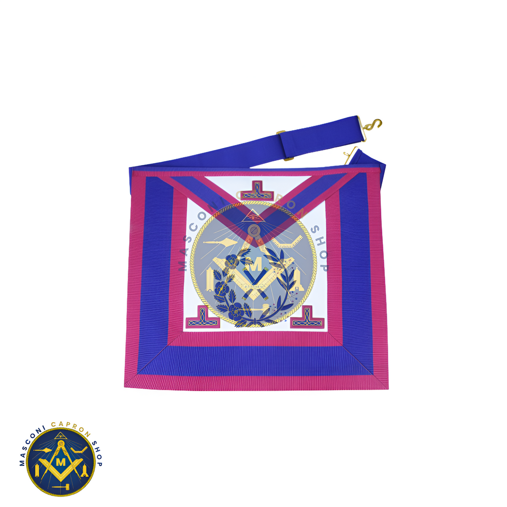 1- Hand embroidered using multi-colour thread set of three T’s and grand rank badge sewn directly on the apron.